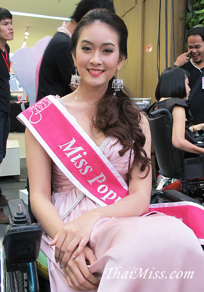 และสาวพิการทางกาย แต่ไม่พิการทางใจ ที่คว้ารางวัล Miss Wheelchair Thailand 2012 ไปครอง พร้อมควบตำแหน่ง Miss popular Vote ได้แก่ ชมพู่ ภัทราวรรณ พานิชชา อายุ 21 ปี หมายเลข 6